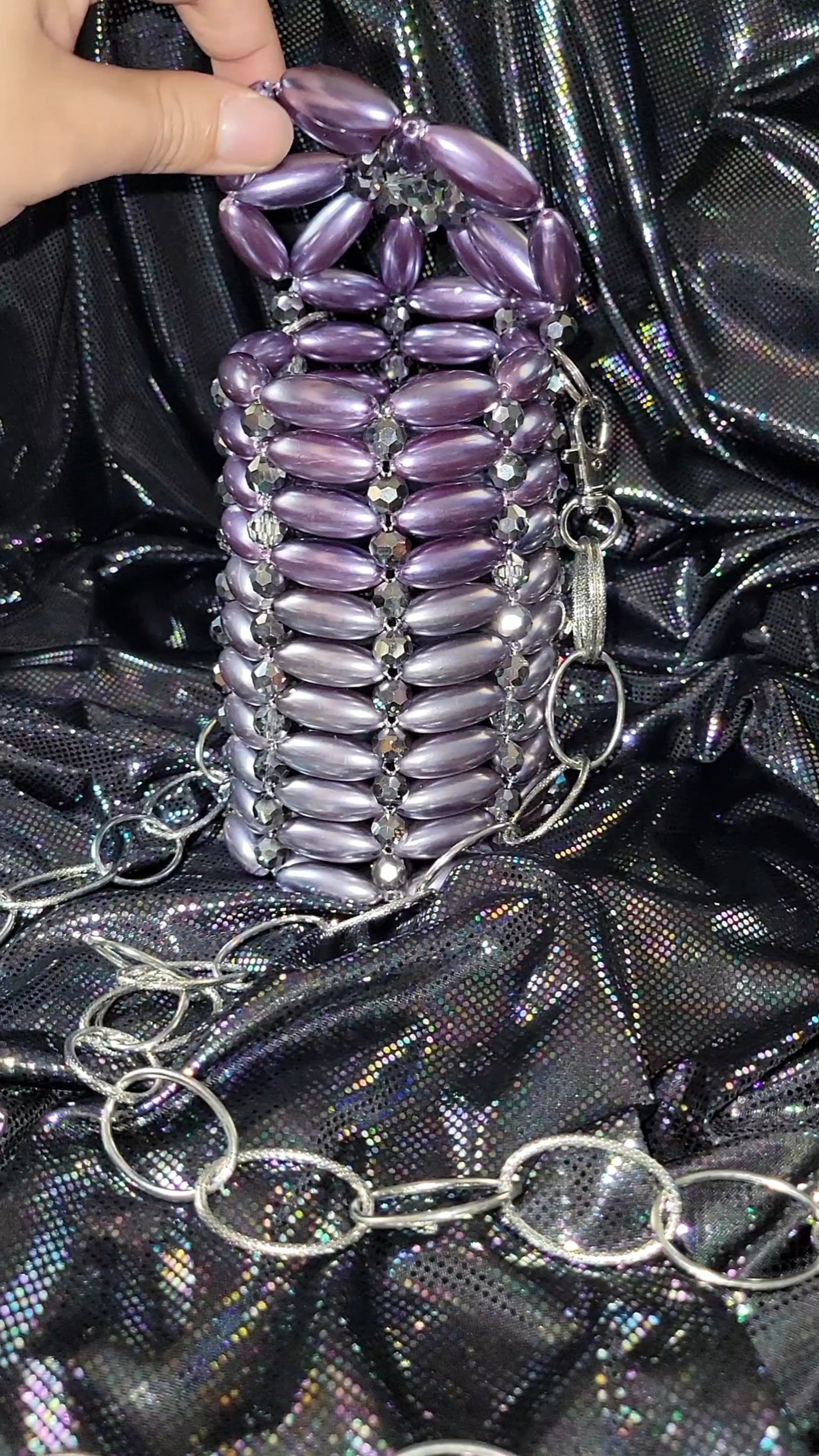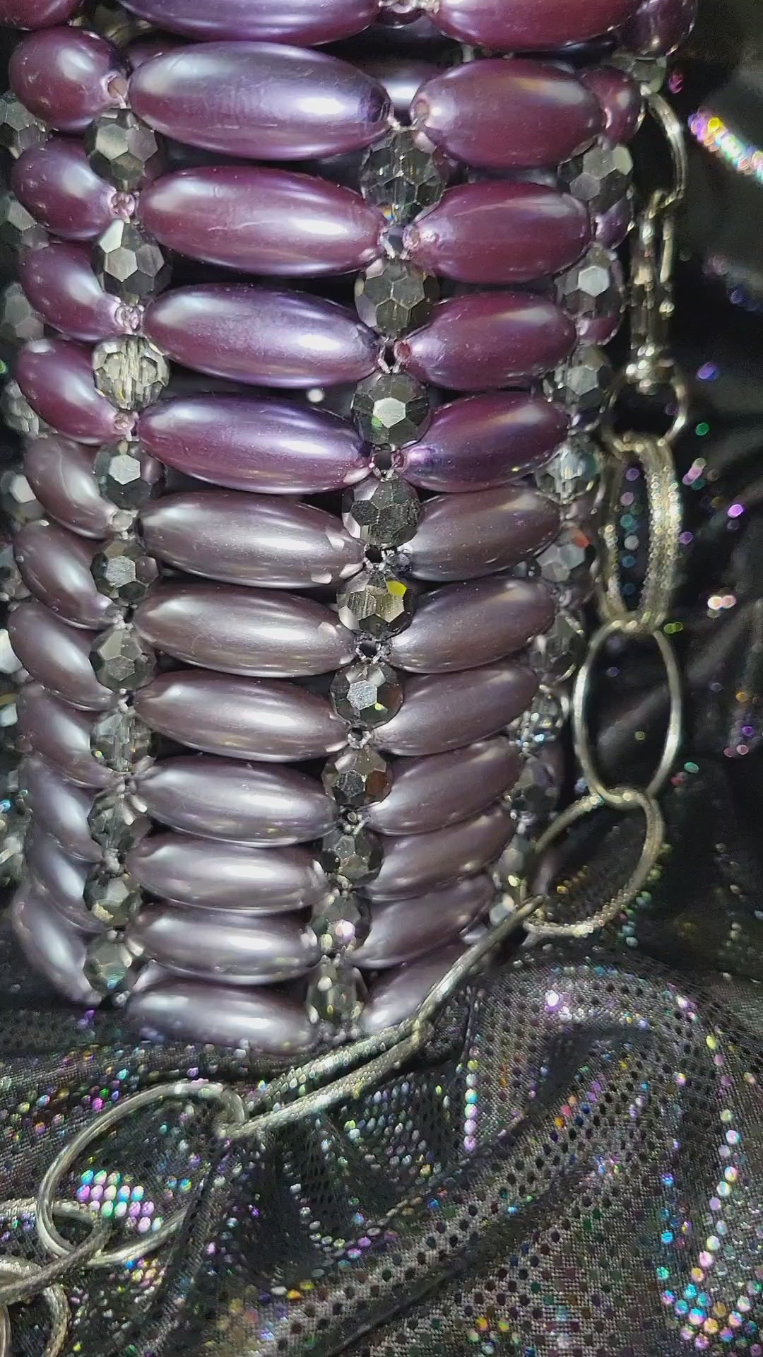 Made of lavender and light lavender acrylic oval beads and clear ab crystals